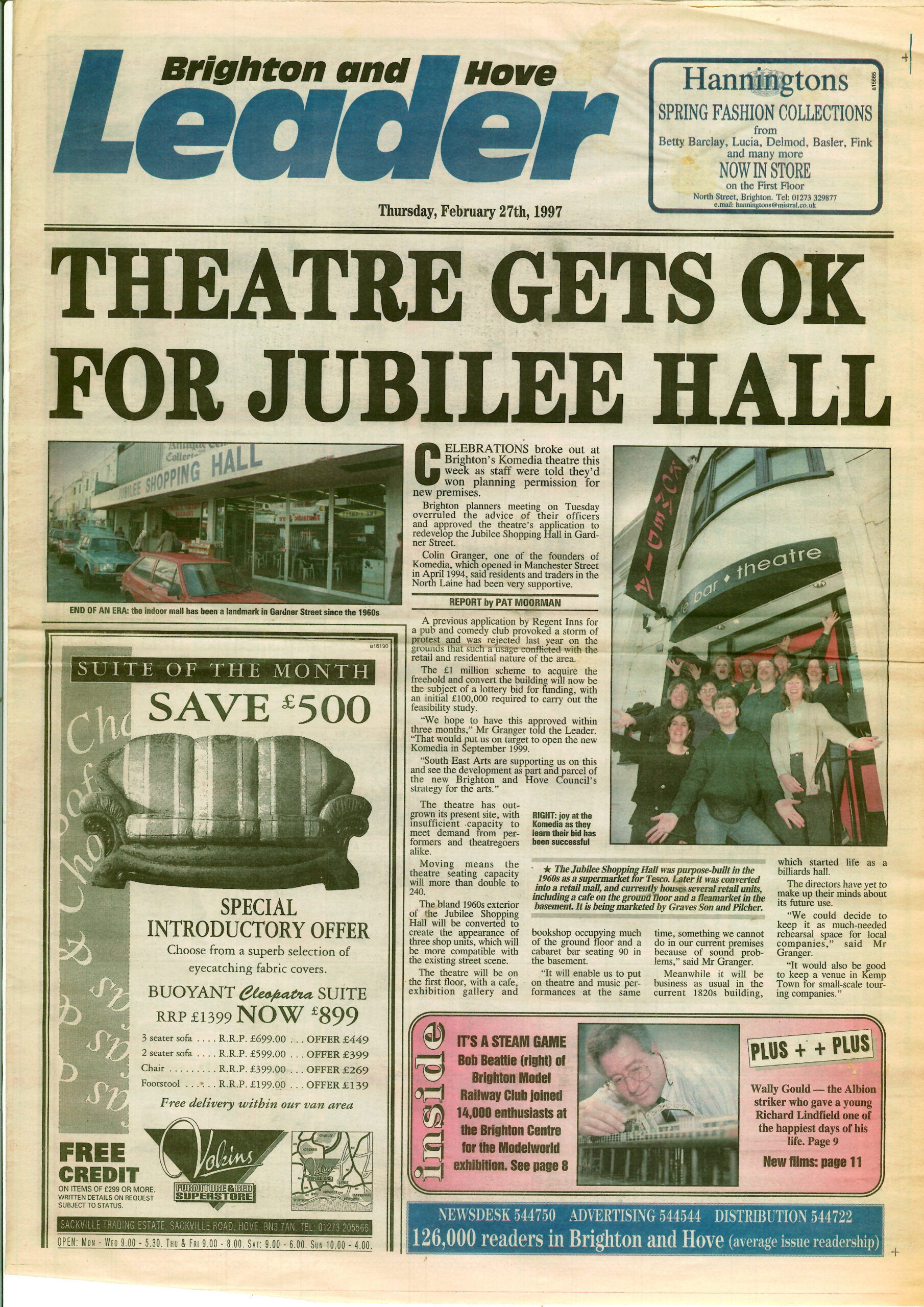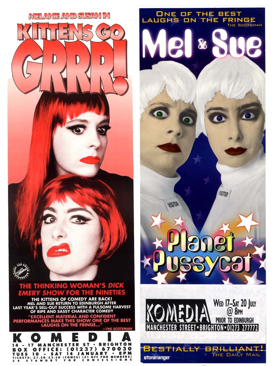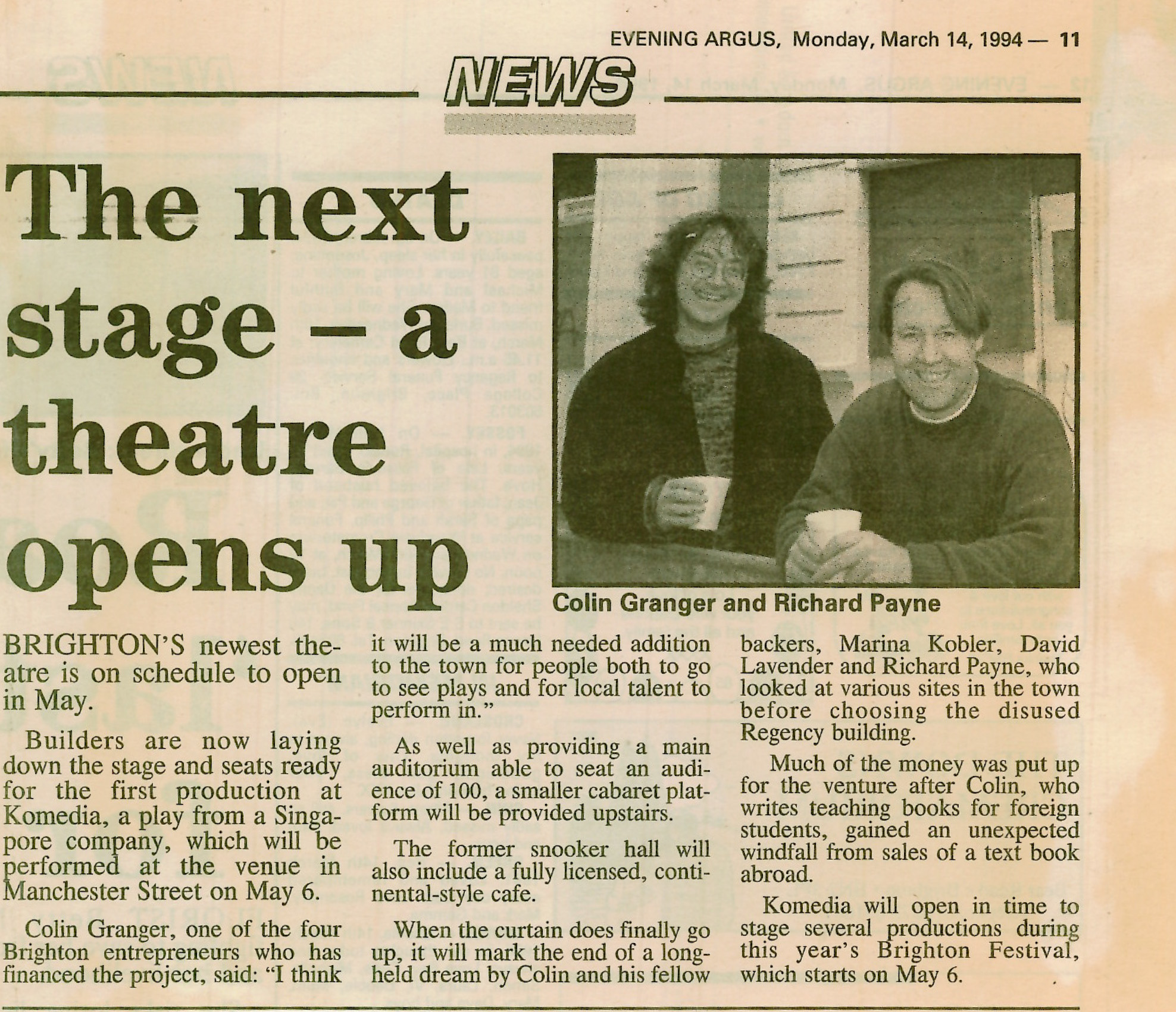 Komedia was born from the minds of the directors of ‘Umbrella Theatre’, Colin Granger, Marina Kobler, and David Lavender. The company modelled the venue on the cabaret theatres they had seen while touring in cities such as Copenhagen, Amsterdam and Berlin. Lavender stumbled across the name Komedia in an international theatre magazine chose it as it had ‘echoes of both comedy and media, and a sense of crossing boundaries.’