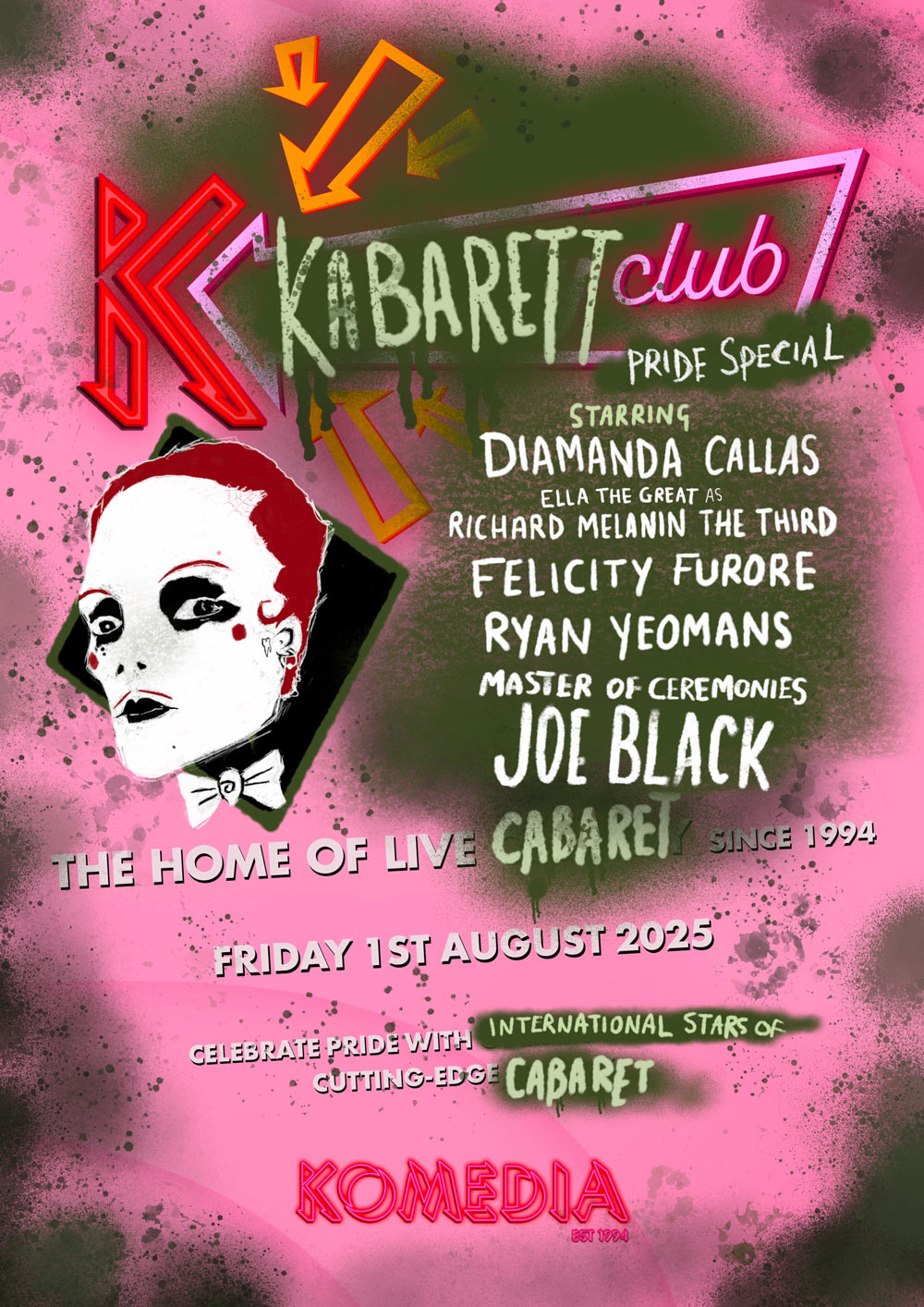 The fantastically mysterious master of cabaret, Joe Black, is taking over the stage to kick off our Pride weekend in style. For one night – and one night only –Friday’s Komedia Comedy Club will turn into Komedia Kabarett Club!