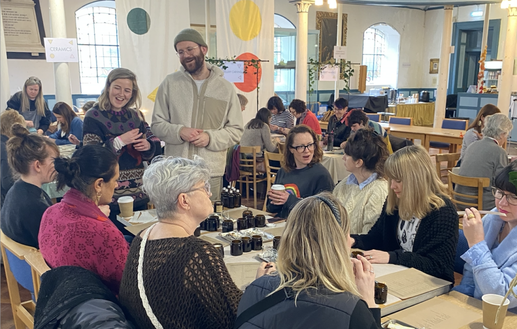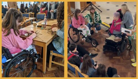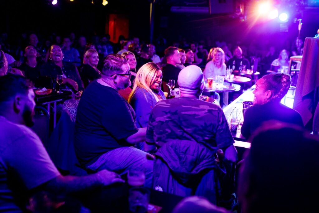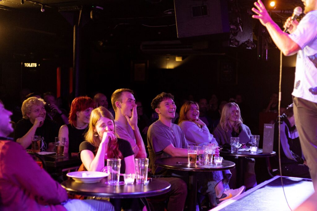 Left: Creative workshops and a Q&A with Alison Lapper MBE at Make It Flow Festival 2024, right: Komedia’s Down The Hatch audience is united in laughter