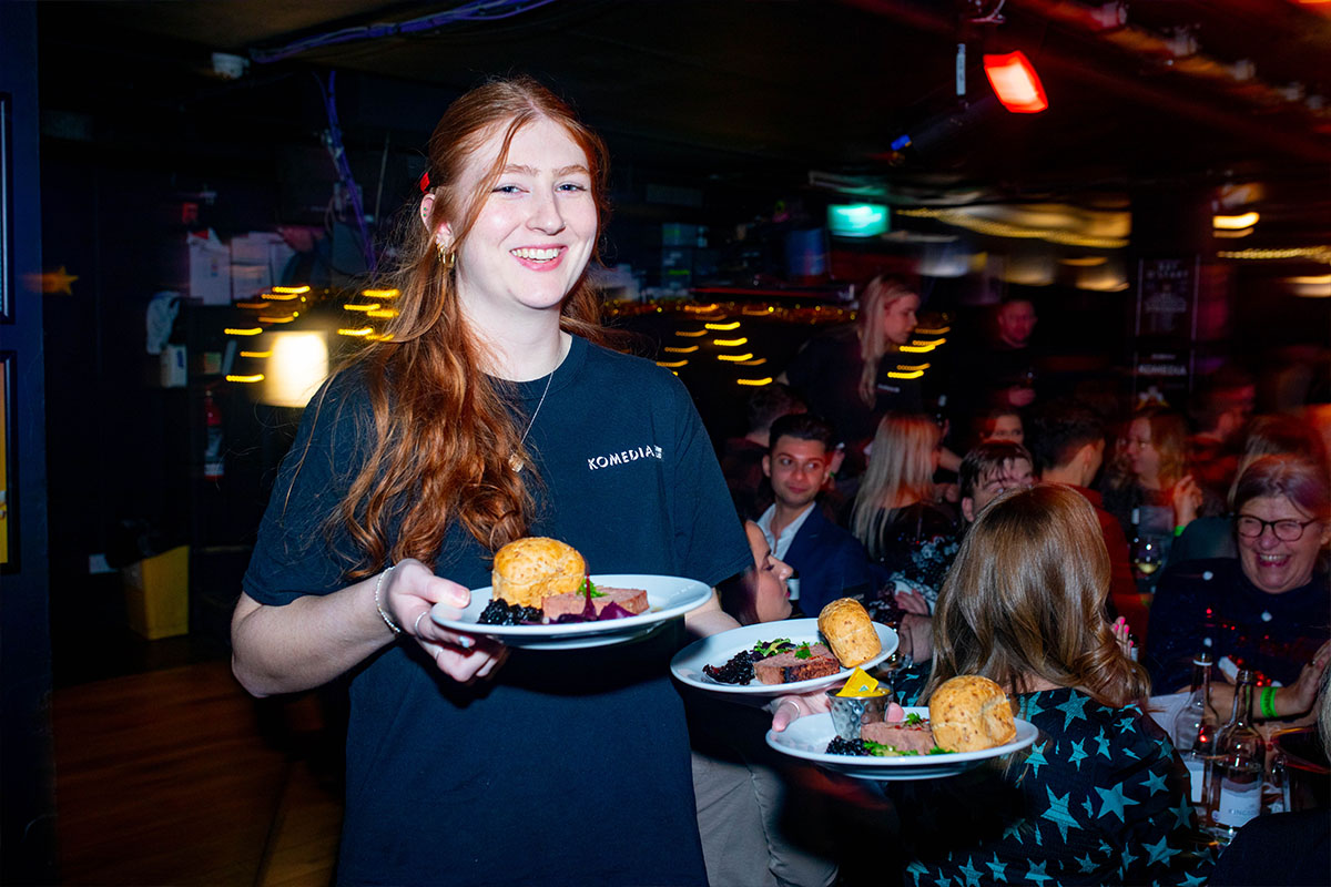 “Had a fabulous night at Komedia for our annual Christmas party. We had a tasty 3-course meal, and the service by Misti and her team was really smooth, attentive, and friendly. Great comedy and great atmosphere. Can highly recommend for a great Christmas party with colleagues or friends!” – J.